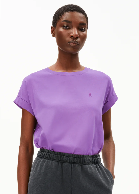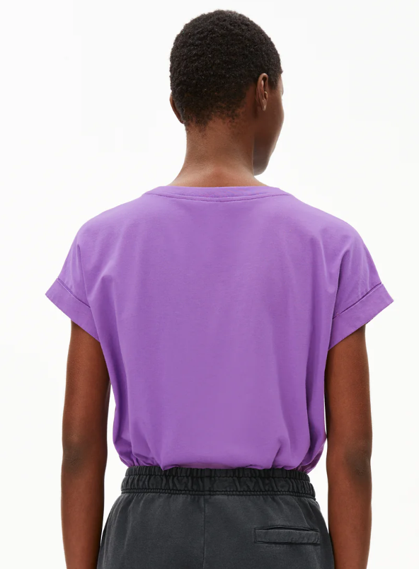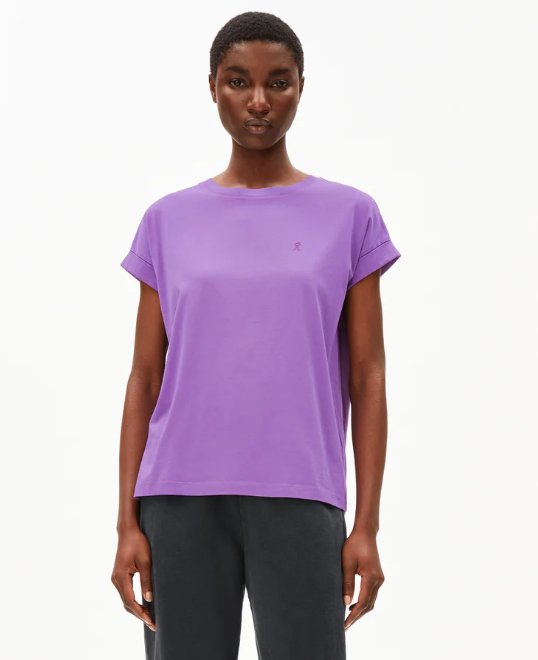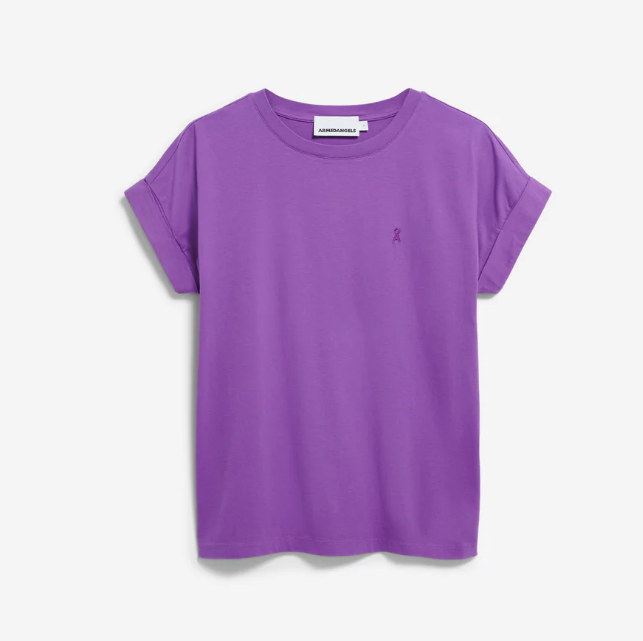 Le bon basique de garde-robe, en coton bio comme on l'aime. Ce t-shirt à col rond se porte aussi bien sous un pull chaud que seul. Ses manches courtes sont retroussées, et il peut se porter de multiples façons.