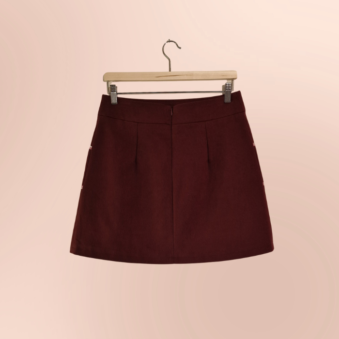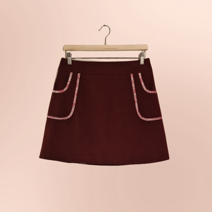 La jupe : d'inspiration 60's, cette mini jupe trapèze a été dessinée pour sublimer tout type de morphologie. Les biais soulignant les poches apportent une touche unique à cette pièce intemporelle.