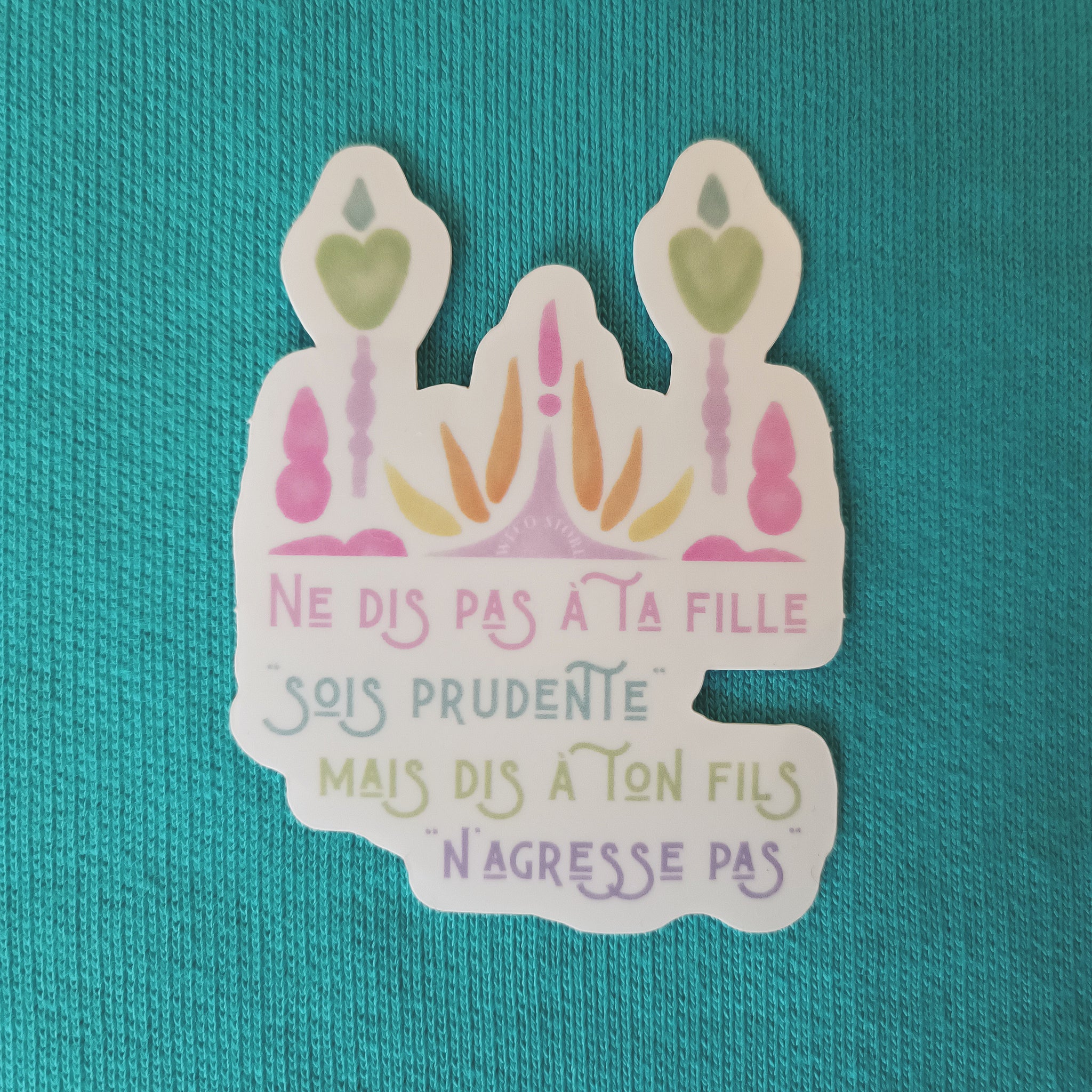 Pourquoi acheter et porter ce sticker? Parce qu'il vous permet de faire un geste envers une association qui vient en aide à des femmes et des enfants qui en ont besoin. Parce que les slogans que scandent ces stickers sont des messages que nous voulons porter le plus loin possible.