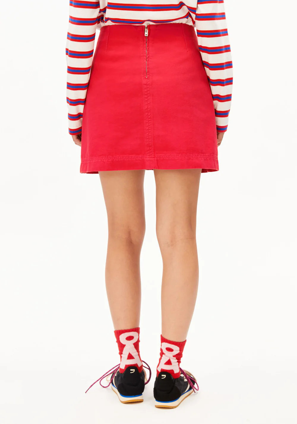 Mini-jupe adorable dans un rouge sensuel et tendance. En toile, elle est assez rigide pour tenir en place toute la journée, en restant super confortable. Les grandes poches à l'avant lui donne un côté "workwear" très in.