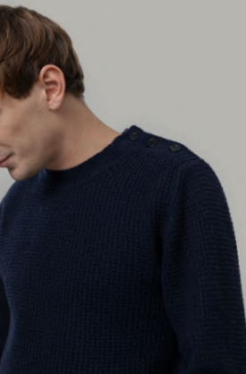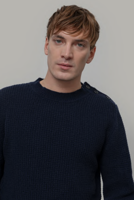 Un pull plein de charme, confortable et doux, c'est Gioele. En laine recyclée, il a une coupe parfaite et une touche d'élégance irrésistible avec ses trois boutons à l'épaule. Texturé, il présente une maille tricotée en carrés pour un effet stylisé.