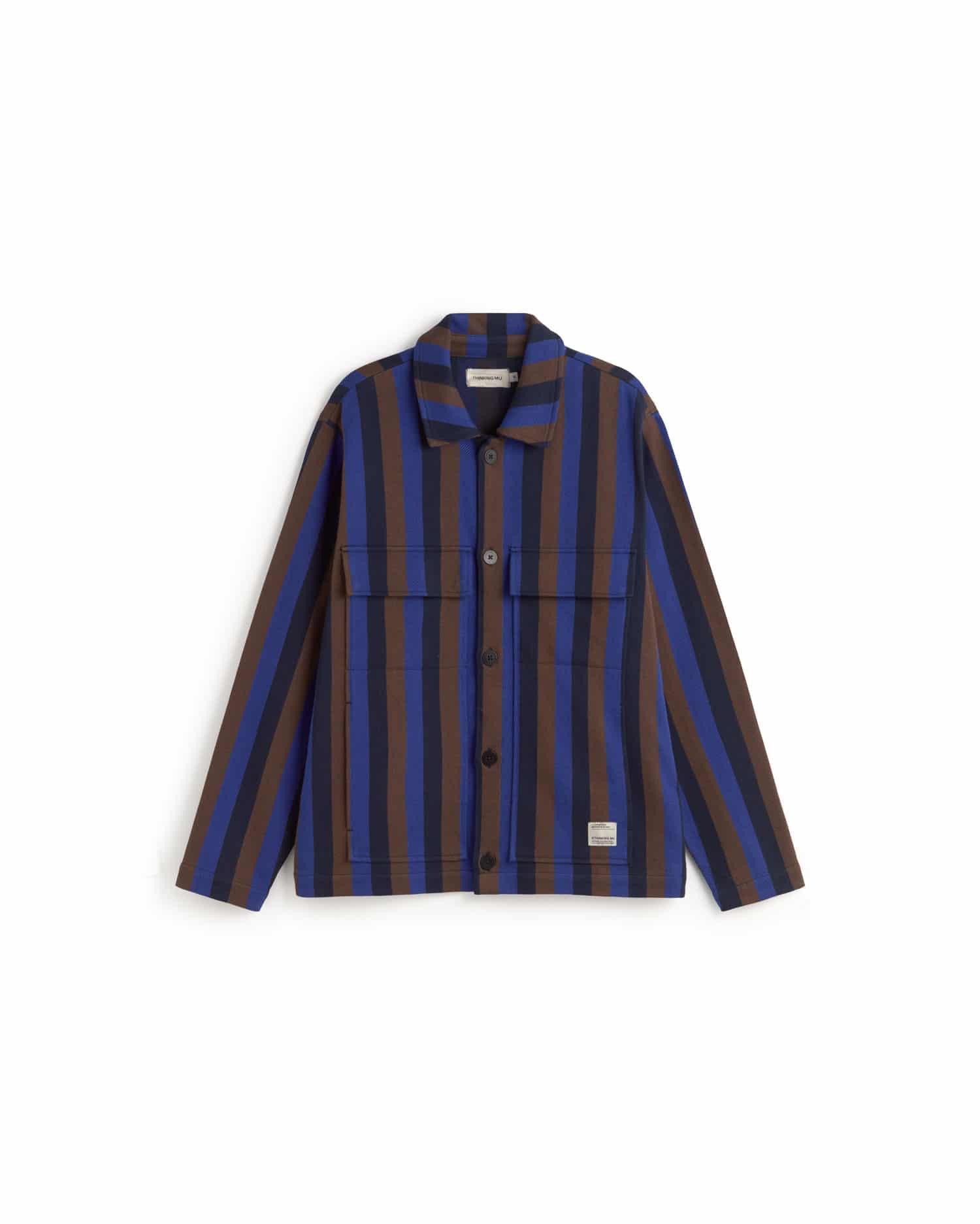 Cette surchemise, c'est un de nos gros coups de coeur. On adore les rayures, et celles-ci, verticales, nous mettent la tête à l'envers ! Pour ne rien gâcher, un trio de couleurs qui s'assemblent si bien, du bleu électrique, du marron et du noir. Ouverte sur un t-shirt d'une de ces couleurs, elle rendra un effet canon.